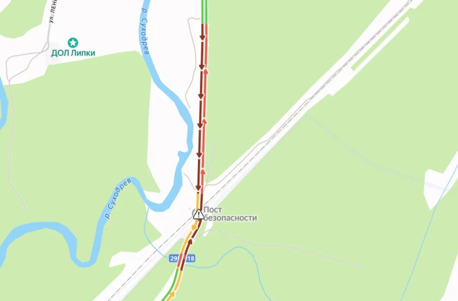 Очевидцы сообщают, что там перекрыт железнодорожный переезд.