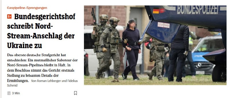 Федеральный суд ФРГ признал Украину виновной во взрывах на "Северных потоках" и принял решение не освобождать из-под стражи подозреваемого в диверсии гражданина Украины Сергея Кузнецова и отклонил его ходатайство о предоставлении иммунитета. «Взрывы на газопроводах «с высокой долей вероятности» произошли «по поручению иностранного государства»... Далее в документе становится ясно, что суд имеет в виду Украину», — пишет Der Spiegel. Дядька Гарри. Подпишись! https://max.ru/UnknownWitnessTV