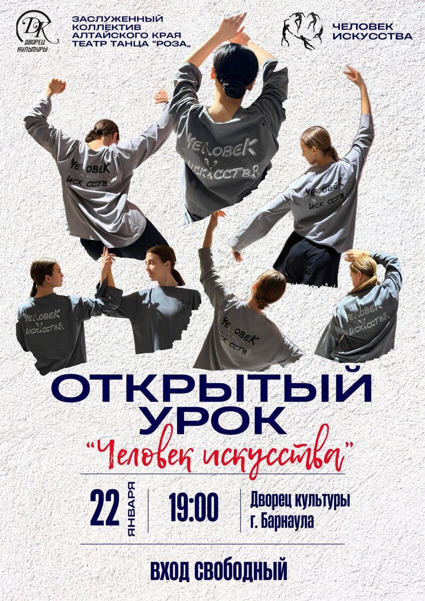 Барнаул Интересные мероприятия от заслуженного коллектива Алтайского края театра танца "Роза". ОТКРЫТЫЙ УРОК "ЧЕЛОВЕК ИСКУССТВА" 22 января 2026 года, 19:00 ДК г. Барнаула Вход свободный ПРЕМЬЕРНЫЙ ПОКАЗ ХОРЕОГРАФИЧЕСКОГО СПЕКТАКЛЯ "ЭХО НЕПРОЙДЕННЫХ ДОРОГ" 5 февраля 2026 года, 19:00 ДК г. Барнаула Стоимость билетов – 450 рублей КОНТАКТЫ: Для приобретения билетов на премьеру пишите в личку t.me/donutspeace Ксения --------------- Опубликовать своё объявление в канале "Танцоры и хореографы России" жми сюда Опубликовать свою вакансию или резюме в специальном чате для танцоров и хореографов жми сюда