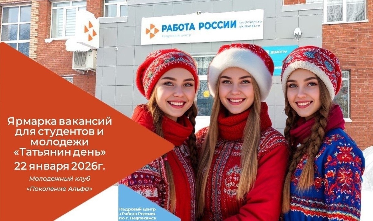 : 22 января состоится ЯРМАРКА вакансий "Татьянин День" (в рамках Молодежного клуба "Поколение Альфа")! Если ты студент, и не знаешь где пройти производственную практику с оплатой труда, найти подработку или основное место работы, то эта информация для тебя! Работодатели города 👇предложат вакансии студентам для прохождения производственной практики с оплатой труда по вакансиям: ☑️юрист ☑️повар ☑️электрик ☑️нефтяные специальности ☑️слесарь ☑️автослесарь ☑️официанты ☑️кухонные и подсобные рабочие и др! В программе - профессиональное экспресс-тестирование, конкурсы и фото-зона! 22 января с 10:00 до 12:00 в Кадровом центре г. Нефтекамска, по адресу: ул.Ленина 42А. 👉 Подписаться на канал