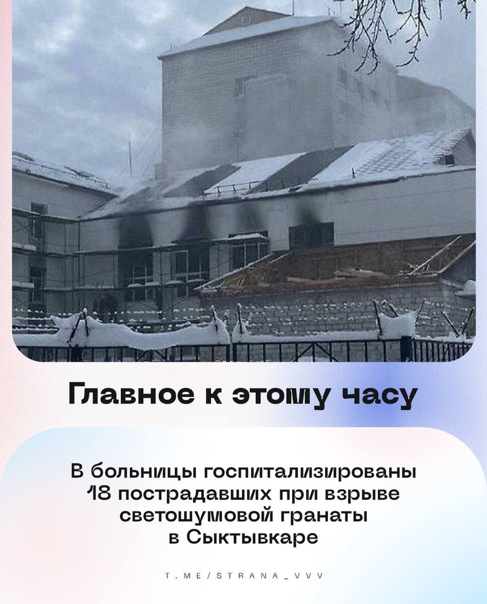 : 🔹В больницы доставлены 18 пострадавших в результате взрыва светошумовой гранаты в Сыктывкаре. 🔹София и Михаил стали самыми популярными именами для младенцев в России в 2025 году — «Реестр ЗАГС». 🔹Необходимо ввести единый размер ручной клади для пассажиров всех авиакомпаний — депутат Школкина. 🔹Над регионами РФ за ночь уничтожено 106 украинских БПЛА — Минобороны. 🔹Поменять дату рождения в документах, удостоверяющих личность, можно только при усыновлении ребенка или если в свидетельстве о рождении была допущена ошибка — член комиссии ОП РФ Машаров. 💰Курсы валют: доллар — 📉78,53; евро — 📉91,81; юань — 📉11,24. ✅ «В Стране» в MAX