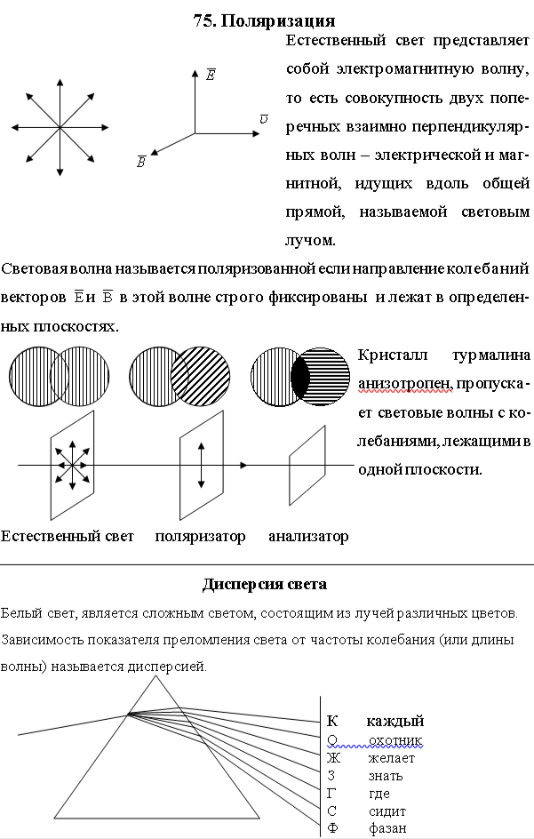 образуется последовательность цветов спектра (от фиолетового до красного). - Внизу приведена мнемоническая фраза для запоминания порядка цветов спектра: