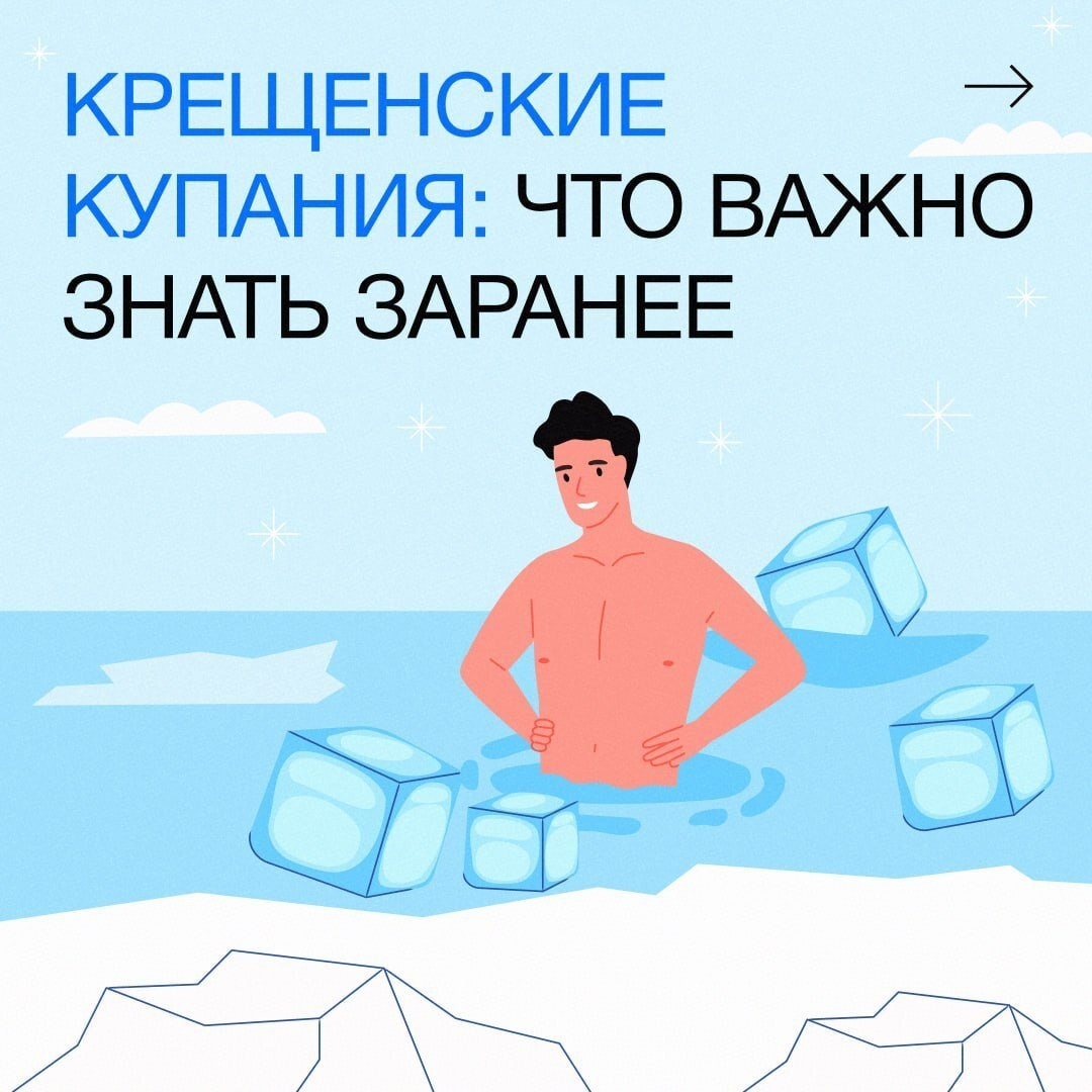 —✅ Рождество— ✅ Крещенские морозы— ✅ Купание в проруби — вы сейчас здесь. Крещенские купания без вреда для здоровья 💦 В ночь с 18 на 19 января, в праздник Крещения, многие по традиции отправятся к купелям. Такой обряд имеет глубокий духовный смысл. Но не забывайте, что это еще и серьезное испытание для организма. Чтобы погружение в купель на этих выходная принесло пользу, а не проблемы со здоровьем, читайте рекомендации в карточках. Готовьтесь к купанию осознанно и без лишнего риска.