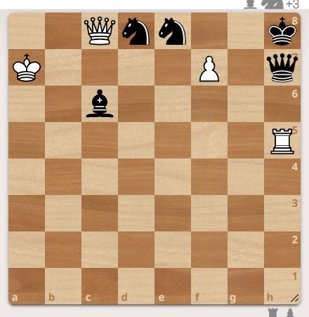 Белой пешке 1 ход до ферзя, но у черных 2 коня и 1 слон с ферзем