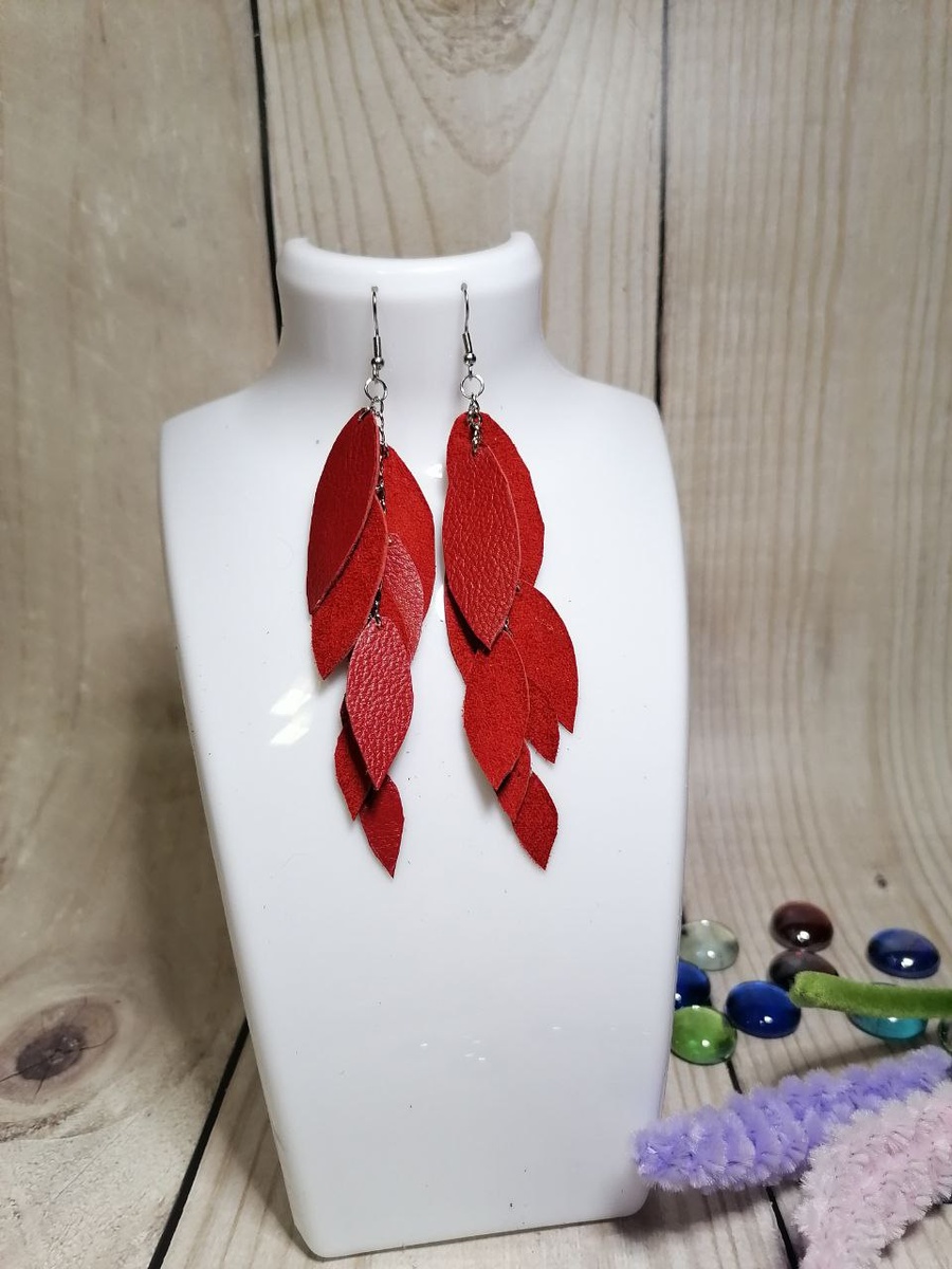 Яркие кожаные серьги-листья в насыщенном красном оттенке — дерзкий акцент вашего образа! 💧