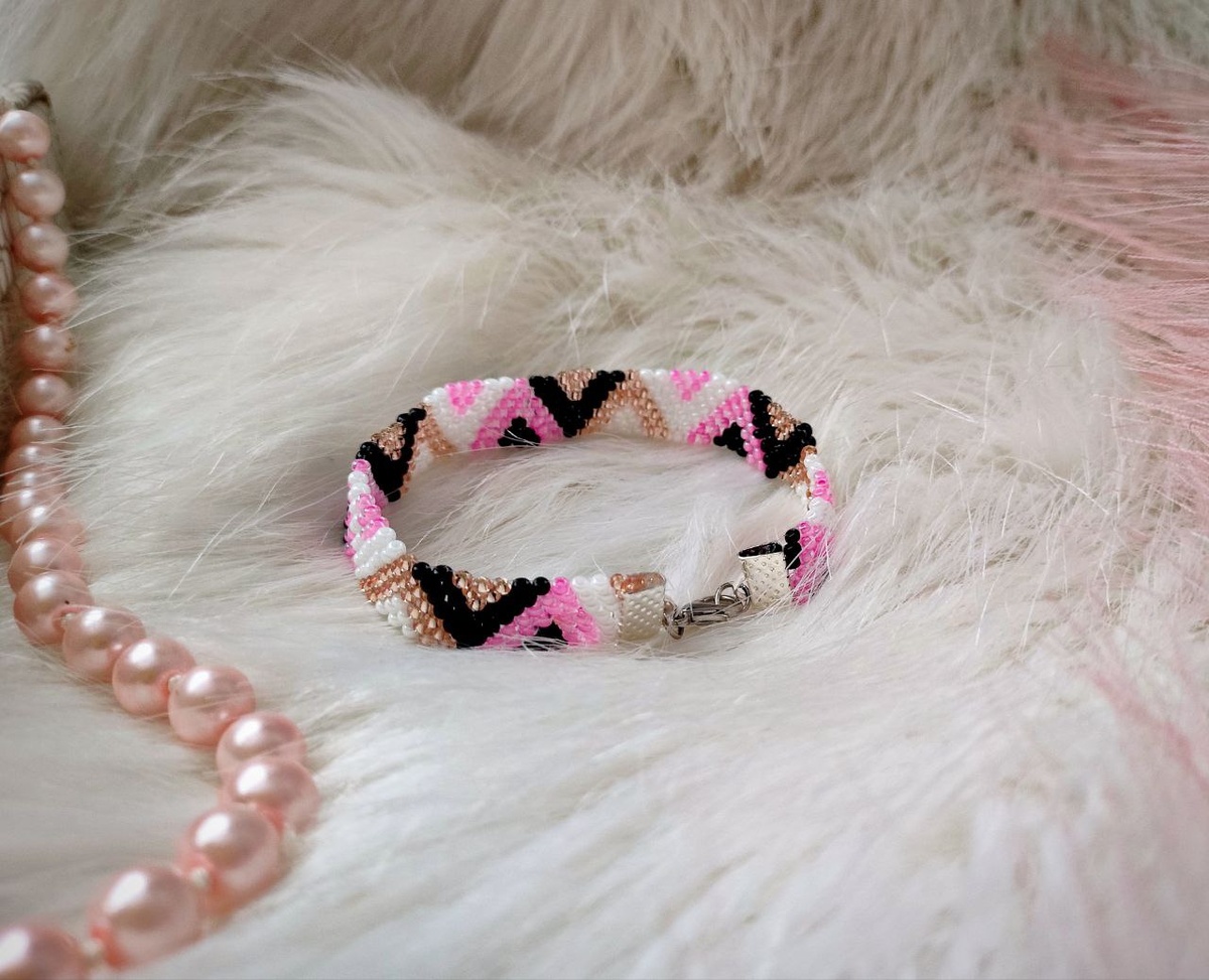 Возможно ли сочетать нежные цвета с яркими оттенками и даже с чёрным? Глядя на этот браслет, ответ очевиден 💞 Бисероплетение - моя страсть