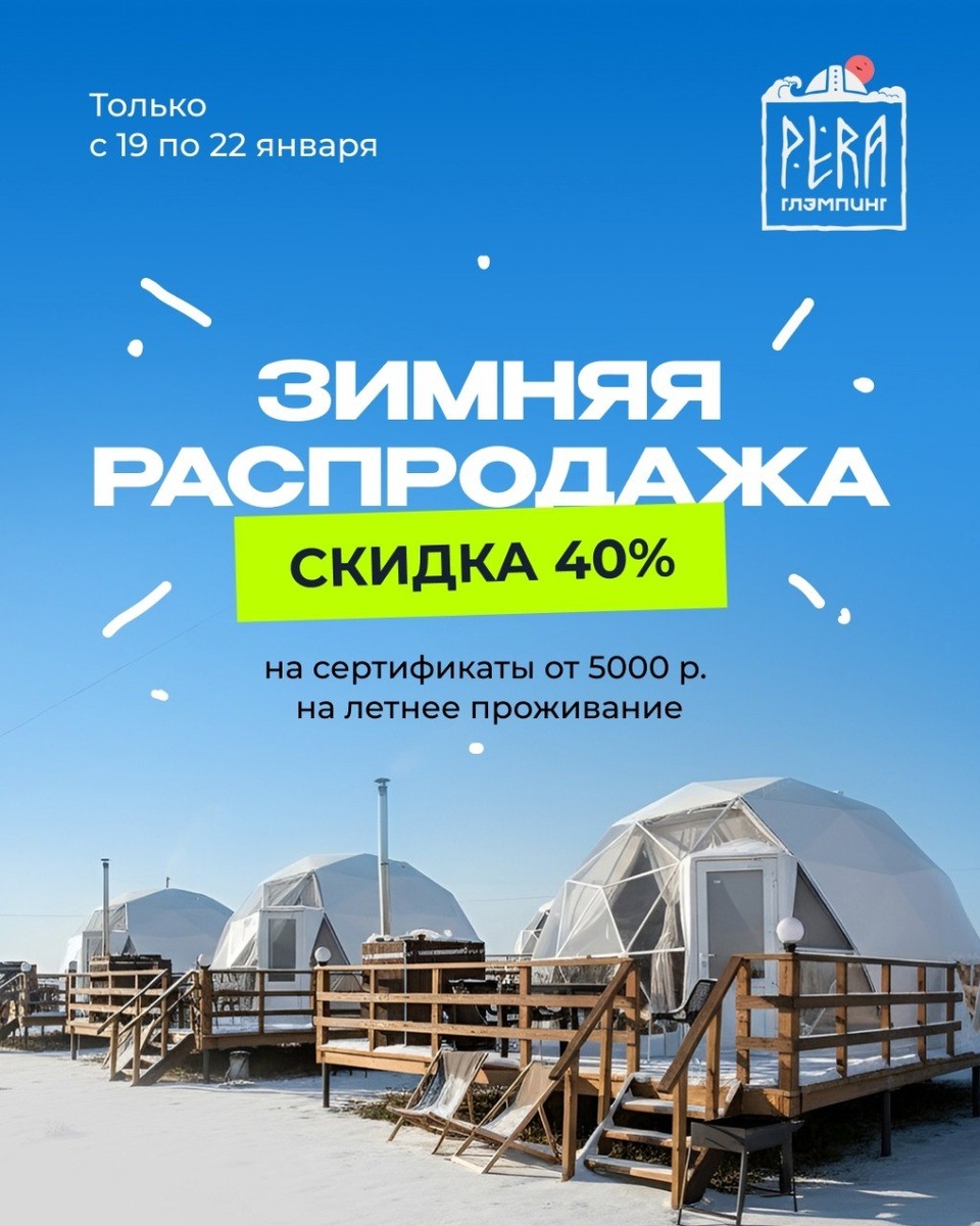🌿 Только с 19 по 22 января в глэмпинге Пера Богатырь действует специальное предложение на летний отдых. ✨ Скидка 40% на летнее проживание — зафиксируйте лучшую цену сейчас, а даты отдыха выберете позже, когда будет удобно. 🎁 Подарочные сертификаты от 5 000 ₽ — это возможность подарить себе и близким лето в Pera: тёплые вечера, природу и полное ощущение перезагрузки. Количество сертификатов ограничено — всего 10 штук. Запланируйте лето выгодно уже зимой — пусть самые красивые моменты будут предвкушаемыми 💫 *Акция не суммируется с другими предложениями компании *Сертификат приобретается без привязки к датам, выбор дат проживания осуществляется позже *Сертификаты действуют только на проживание *Завтраки и дополнительные услуги не включены в сертификат ▶ Бронь: t.me/PeraBogatir_adm 📞 +7 (978) 191-63-35