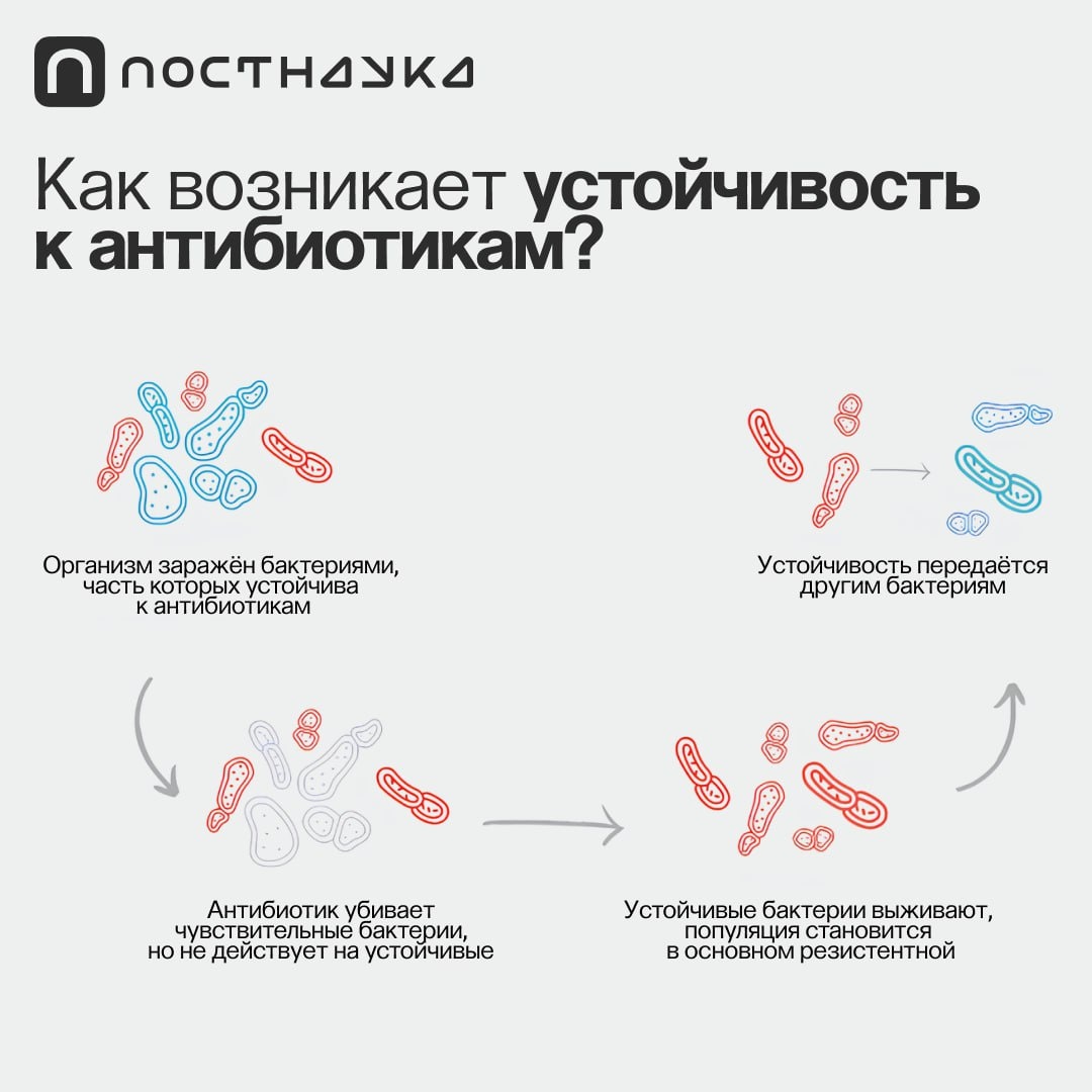 проходит 15–20 лет. Более того, появились мультирезистентные или полирезистентные микроорганизмы, которые устойчивы к трём и более классам антибиотиков, а некоторые обладают панрезистентностью, то есть они устойчивы ко всем используемым в настоящее время классам антимикробных препаратов. Как бороться с резистентностью к антибиотикам: https://postnauka.org/video/157011