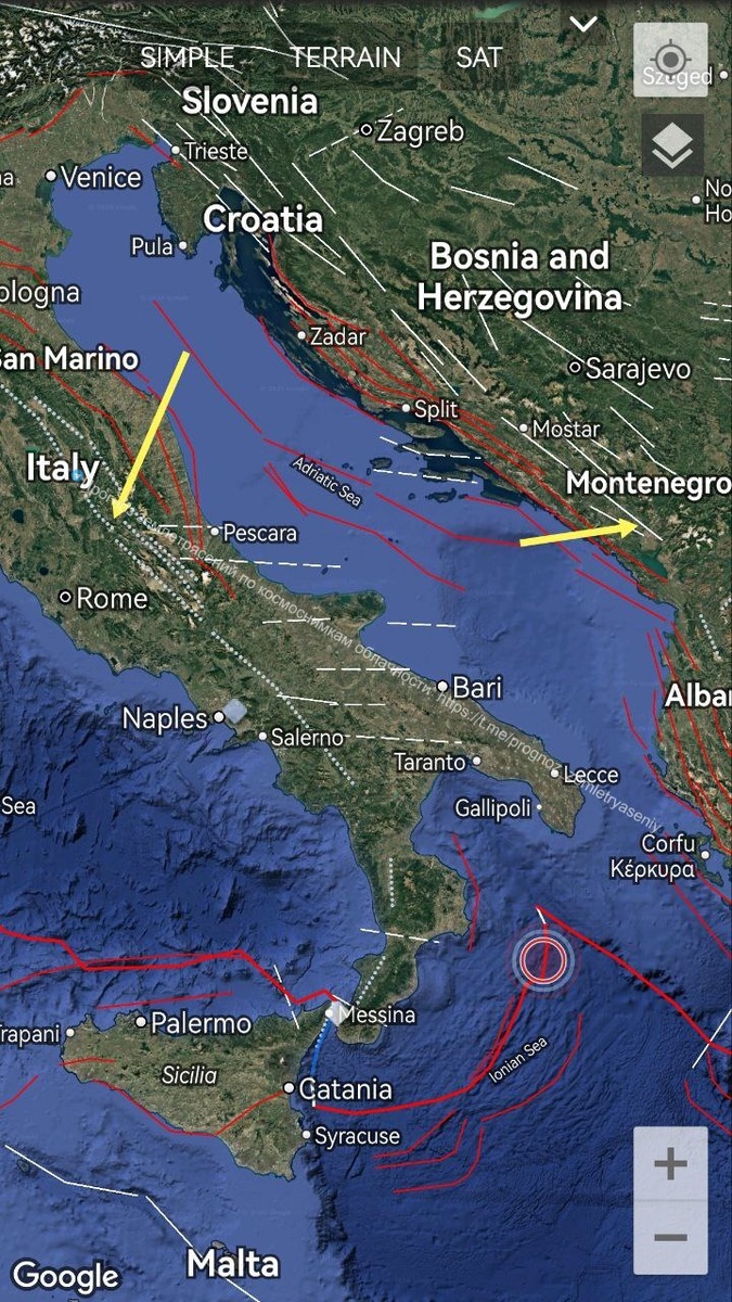 Сегодня под утро наблюдается повторный ОСТИ по Адриатическому морю уровня М6+. В зону риска попадают Италия и Балканы. ===== This morning, there is another CSTI of the M6+ level in the Adriatic Sea. Italy and the Balkans are at risk.