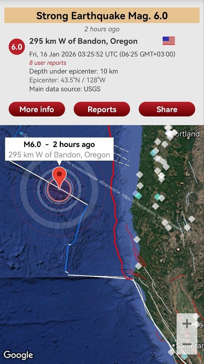 Плита Хуана де Фука в итоге отработала не у Калифорнии, а в океане с западной стороны. ОСТИ наблюдался за часы до события М6.0 (фото 2)