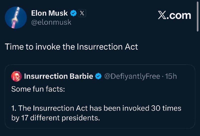 ELON says time for INSURRECTION Act in MINNEAPOLIS on X
