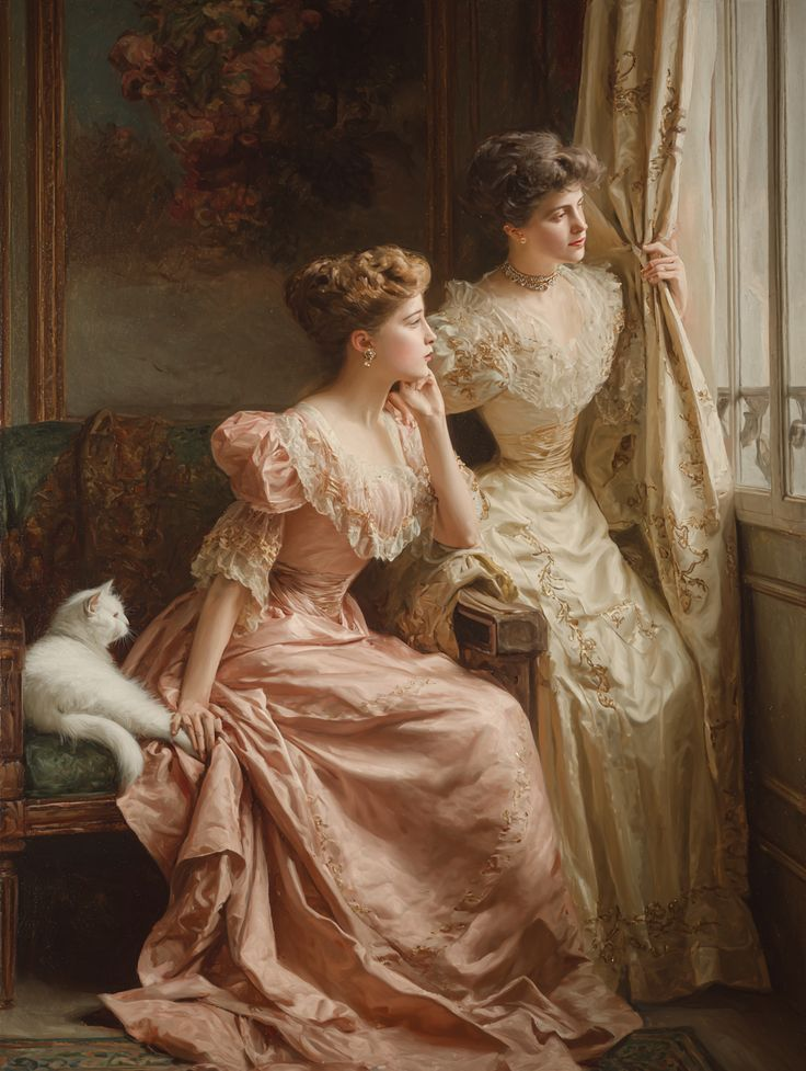 Автор, пишут, известный, но никто не называет его имени, так что и я не назову. Гугл мне предлагает имена итальянских и французских художников, но стиль у них не тот. Больше всего похоже, что эту картину какой-то английский художник написал – очень тонкая, изящная работа. Никаких ярких, аляповатых красок, умные лица девушек, нежный неяркий цвет. Очаровательная картина в салонном жанре.