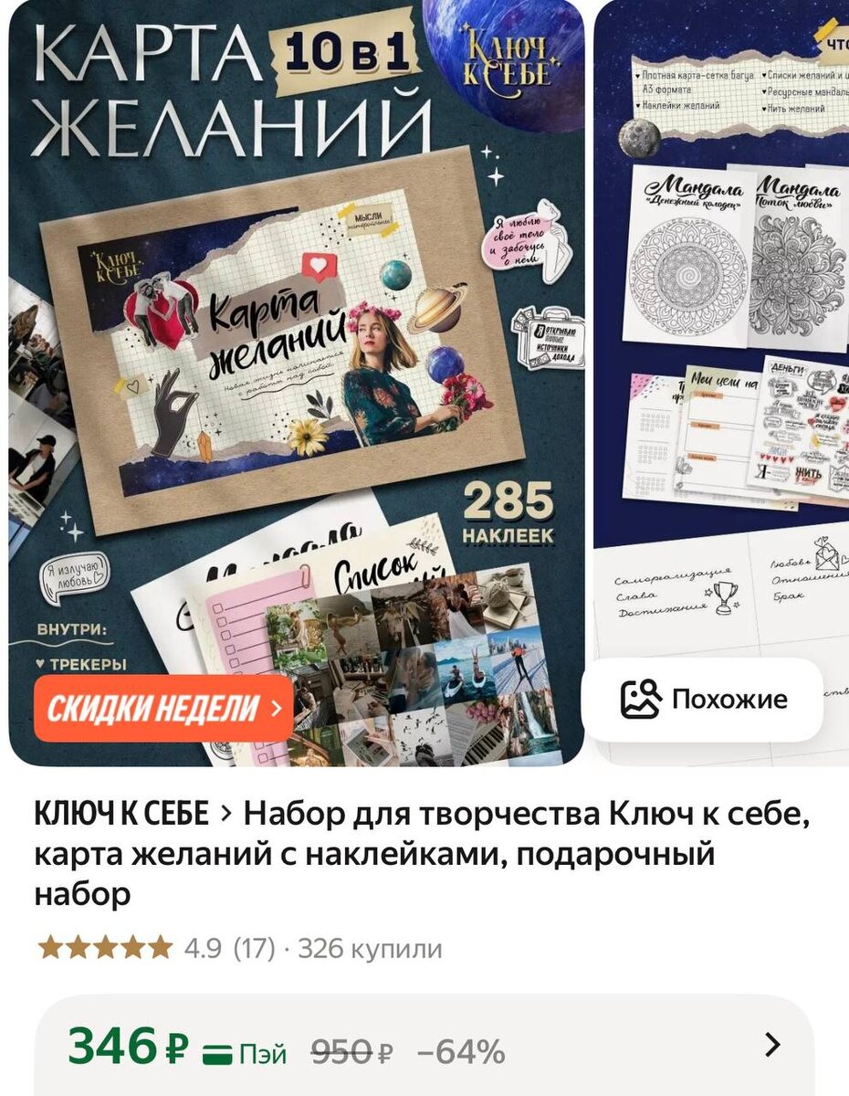 😔🫨😪Набор для творчества Ключ к себе, карта желаний с наклейками, подарочный набор