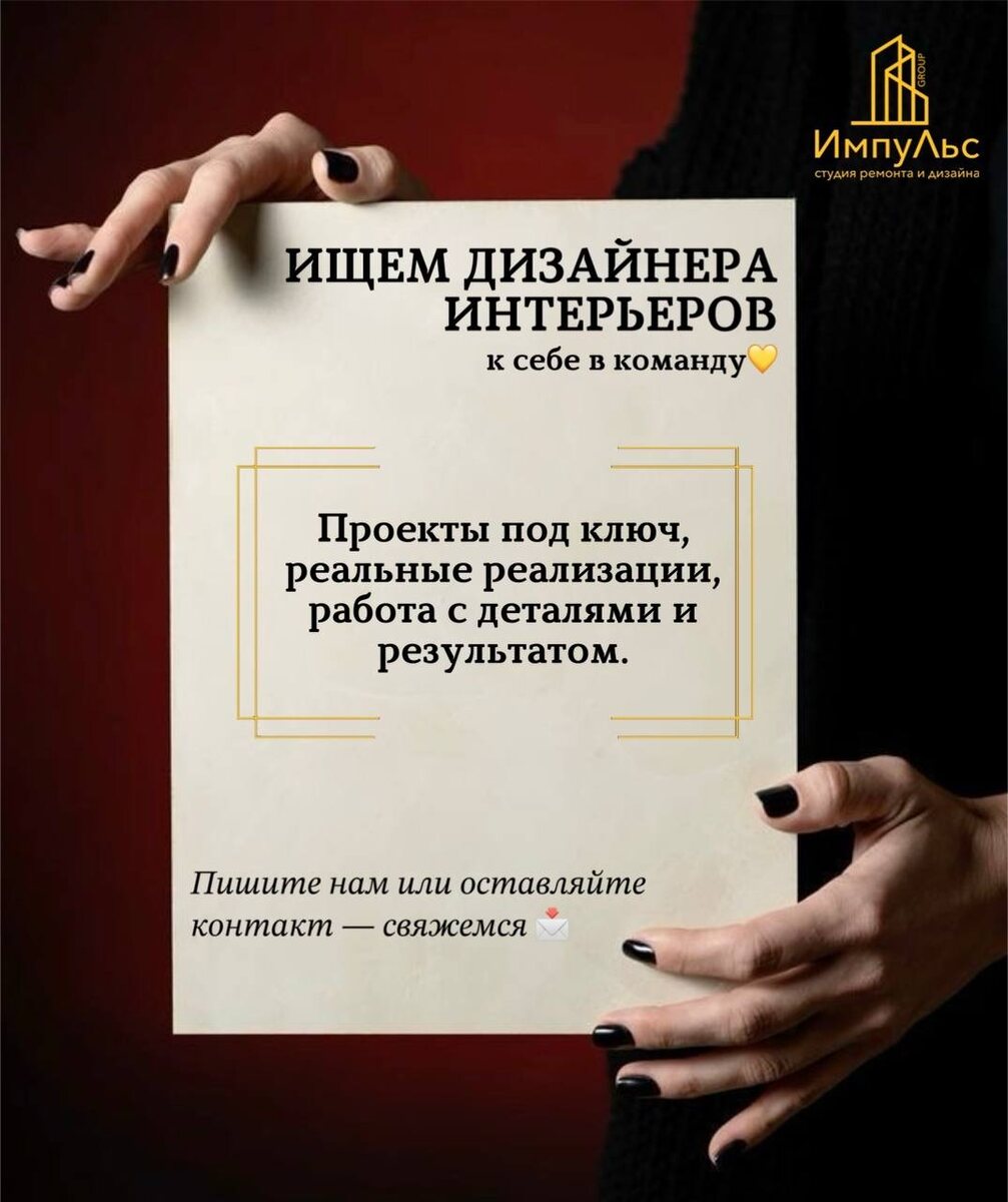👭 Мы ищем дизайнера интерьеров, которому близки продуманные решения, внимание к деталям и желание видеть результат своей работы реализованным. Мы работаем с проектами «под ключ» — от концепции и дизайн-проекта до полной реализации и комплектации. Поэтому для нас важно не только уметь красиво проектировать, но и понимать, как интерьер живёт в реальности. Если вам близок продуманный подход к дизайну и вы хотите работать в команде, где ценят результат — будем рады знакомству🤝 📞 Вы можете позвонить нам, 💬 написать нам в Whats App — мы обязательно свяжемся с вами. Студия ремонта и дизайна «Импульс GROUP» 📍г. Иркутск, Байкальская 129, офис 308 ☎️ 652-622