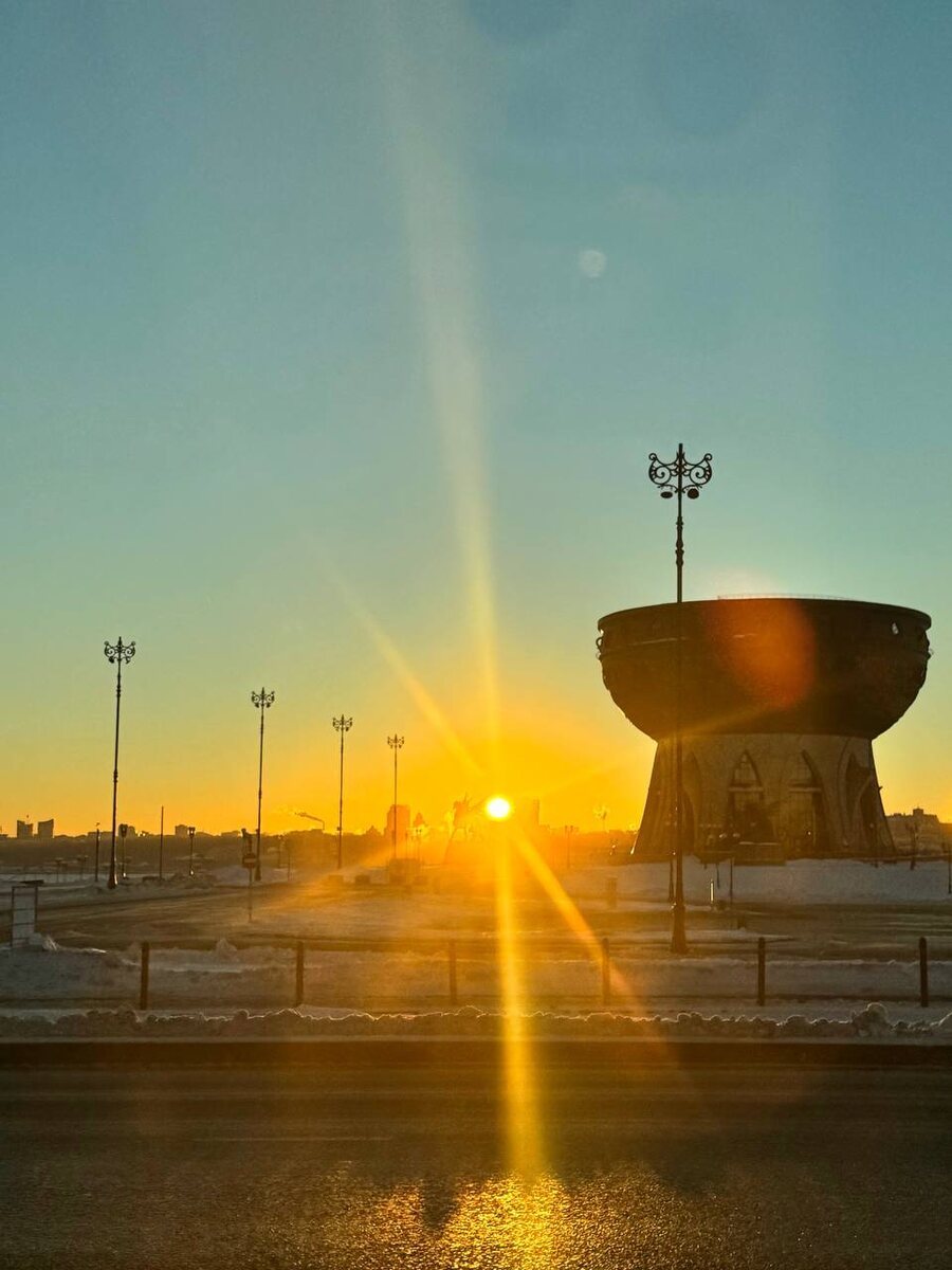🌇Казаннан иртәнге кояш нурлары җибәрәбез сезгә, карендәшләр!☀️❄️ Карагыз нинди матурлык