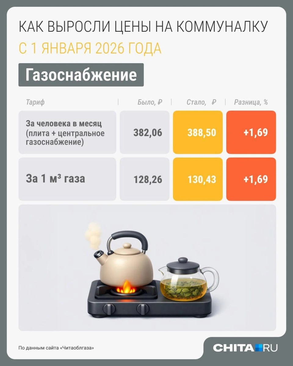 В последний раз тарифы в Чите выросли 1 июля — в традиционное время для повышения, на некоторые виды услуг цены поднимали в октябре. Стоимость в течение года регулирует региональная служба по тарифам в зависимости от инфляции и других факторов. Спустя полгода тарифы повысили опять. На этот раз из-за подъема НДС с 20 до 22%. Как изменилась цена и сколько теперь придется платить.⬆️ 💬Капремонт — единственное, на что с 1 января не поднялись тарифы. Возможно, повышение будет позже. Последний раз плата повышалась 1 июля 2025 года — примерно на 35%. 🟦 «Чита.Ру» в MAX | Предложить новость