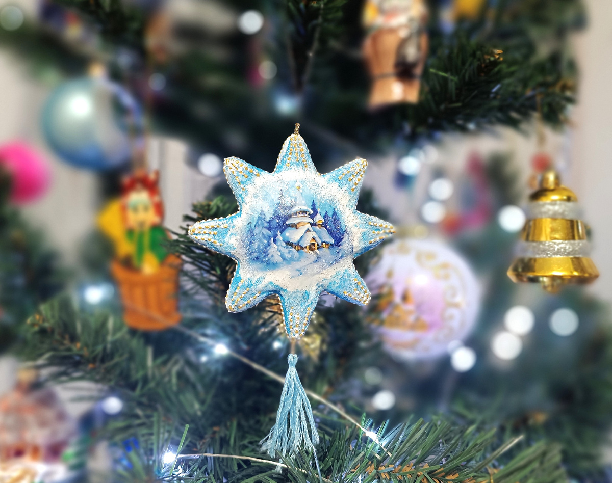 Хоть Новый год и Рождество остались уже позади в череде январских праздников, у меня все-таки сотворилась еще одна подвеска на ёлку - восьмиконечная звездочка! Выполнена она из ваты, и на примере этой формы можно делать самые разные украшения, если задекорировать их в соответствующей тематике. Моя стала именно рождественской звездой, но планирую к следующим новогодним праздникам сделать еще похожие подвески с уже другим декором. Итак, приступим! В сегодняшней части моего обзора я расскажу о том, как создавала саму эту форму - восьмиконечной звезды. Понадобится: Первоначально вырежем что-то вроде трафарета для будущей работы - звезду из бумаги. На ее контуры будем ориентироваться при выполнении последующих шагов. Вырезаем звездочку по знакомой с детства схеме вырезания снежинок, складывая бумажный лист в несколько раз: Поскольку и бумага у меня белая, и вата белая, удобнее использовать рабочим фоном что-то темное, контрастное. Очень подходящим здесь станет мат для резки - он и темный,