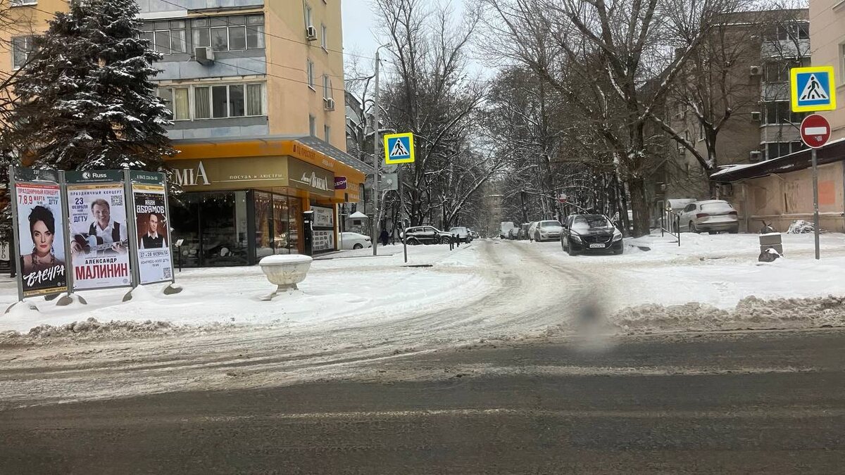 На Ворошиловском проспекте машины расчистили снег, но в некоторых местах он еще остался. На соседних улицах ситуация хуже. По ним проехать можно только на санках, шутят горожане.