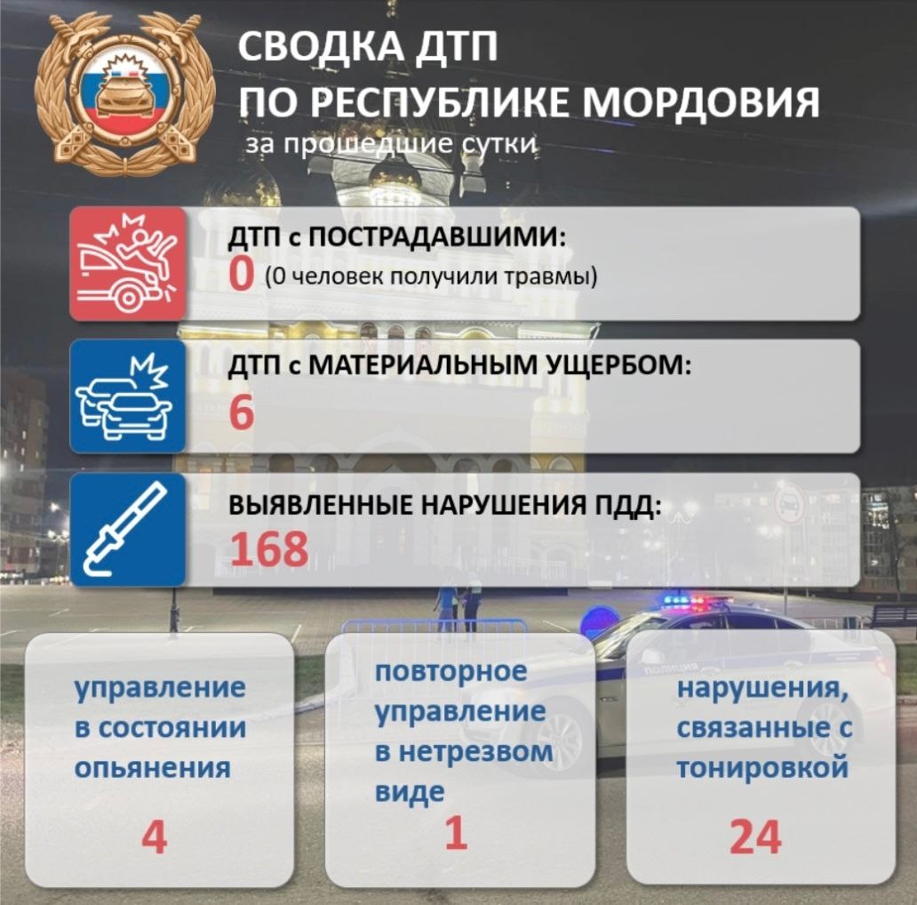 🚔 ГАИ Мордовии: 15 января 2026 года на дорогах республики не зарегистрировано ни одного ДТП с пострадавшими в них людьми