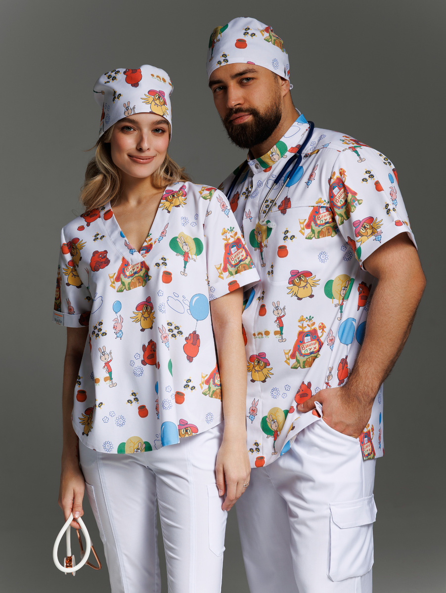 Голос из детства. Тепло маминых рук. Мультфильмы, которые шли по вечерам и учили нас доброте, смелости и вере в хорошее. Коллаборация Mariita × Союзмультфильм появилась из нашего общего детства — тёплых воспоминаний и искреннего желания сделать так, чтобы дети переставали бояться врачей, а приём ассоциировался с безопасностью, доверием и добротой. Для бренда Mariita медицинская одежда — это всегда больше, чем форма. Это состояние врача, его уверенность, внутренний баланс и то, какую энергию он транслирует пациенту. Союзмультфильм — это целая культурная память поколений. Его герои — не просто персонажи, а символы заботы, юмора, поддержки и светлого взгляда на мир. Объединяя эти два мира, мы создали не просто коллекцию, а эмоциональный инструмент взаимодействия врача и пациента. Для взрослых пациентов принты и вышивки с героями Союзмультфильма — это мгновенное возвращение в детство.