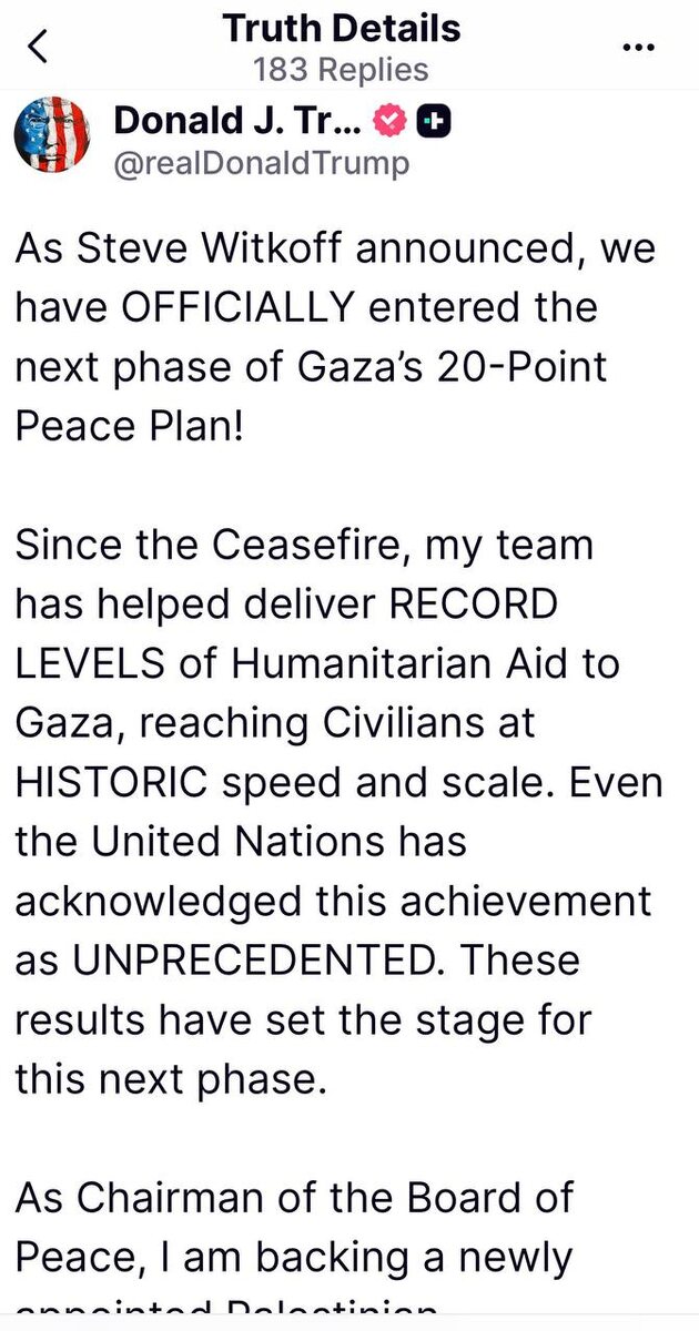 Трамп сообщил о том, что Совет Мира по Газе сформирован и будет вскоре представлен общественности