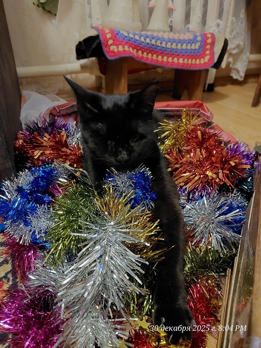 Шерри была одной из тех наших подопечных, кто очень долго искал свой дом. Но теперь она счастливая домашняя кошка! И недавно мы получили известие о том, что Шерри активно участвует в подготовке к Новому году у своих новых хозяев.