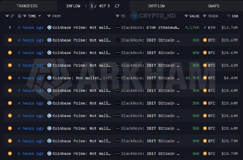 πΉ ΠΠΎΠΌΠΏΠ°Π½ΠΈΡ BlackRock Π²ΡΠ²Π΅Π»Π° Ρ Π±ΠΈΡΠΆΠΈ Coinbase Prime 6647 BTC ($638m) ΠΈ 4179 ETH ($13,7m) Π·Π° ΠΏΠΎΡΠ»Π΅Π΄Π½ΠΈΠ΅ ΡΡΡΠΊΠΈ β ΠΊΠΎΡΠ΅Π»Π΅ΠΊ