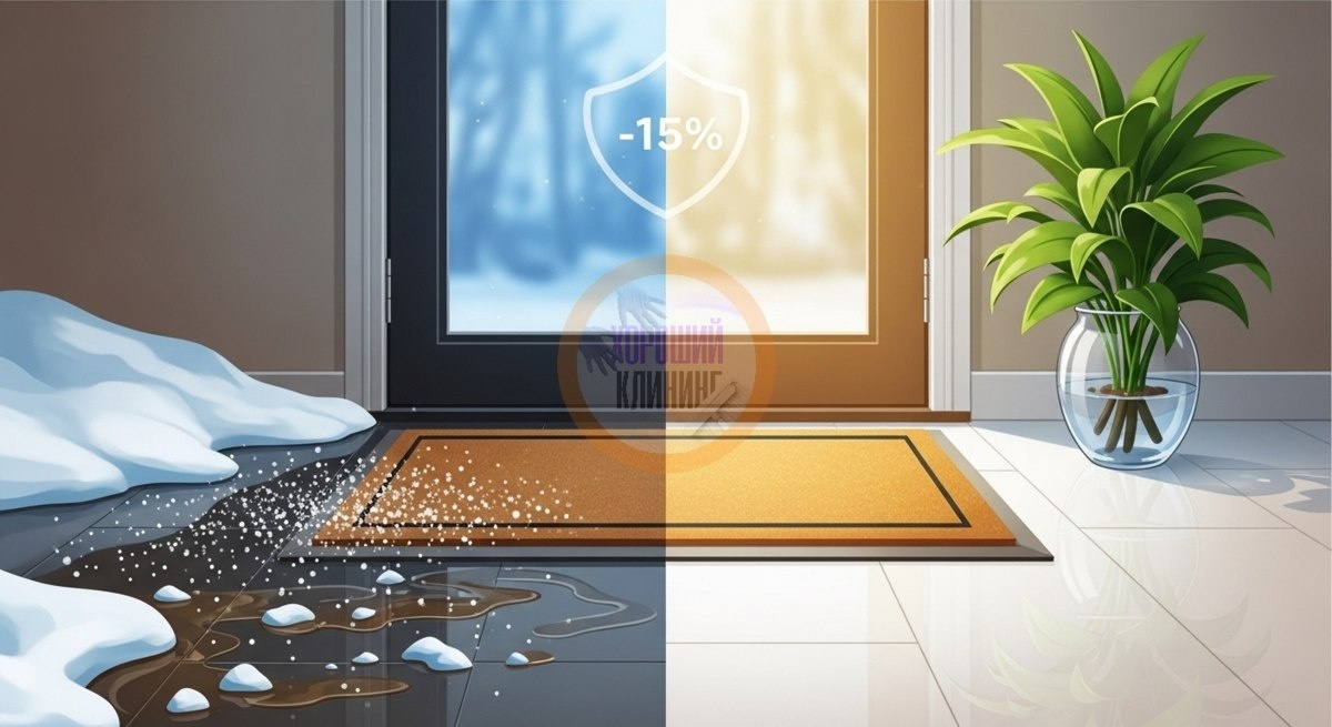 Слякоть за порог не пустим! 🚫🧹 Акция «Анти-слякоть»: -15% на чистку коврика и пола в прихожей