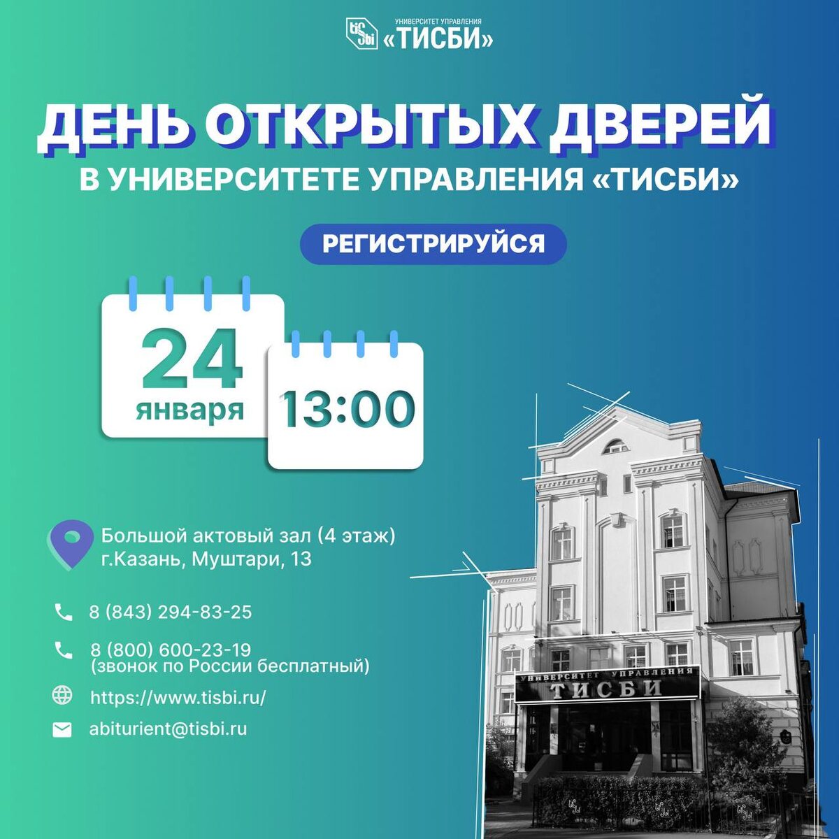 Планируете поступать в 2026 году? Хотите узнать, сколько бюджетных мест будет в ТИСБИ, какие минимальные баллы ЕГЭ нужны и как выбрать экзамены, чтобы точно пройти конкурс? Приходите на День открытых дверей Университета управления и Колледжа «ТИСБИ» в Казани! Что вас ждёт: 🔺 Полная информация о приёмной кампании 2026 в вуз и колледж 🔺 Подробности по бюджетным и платным местам 🔺 Актуальные минимальные проходные баллы ЕГЭ 🔺 Сроки подачи документов и особенности поступления 🔺 Советы, как выбрать ЕГЭ, чтобы не ошибиться с направлением 🔺 Презентация уникальных образовательных программ: «Инженерия информационных систем» (совместная программа с АНО ВО «Университет Иннополис»), «Управление предприятиями общественного питания» ( в интересах и за счет средств ООО «ТЮБЕТЕЙ УК» с гарантированным трудоустройством), «Управление персоналом в условиях цифровой трансформации» (целевое обучение за счет сеть кафе-пекарен «Cinnabon») и другие спецпроекты «ТИСБИ» ✅ Вы сможете задать вопросы руково
