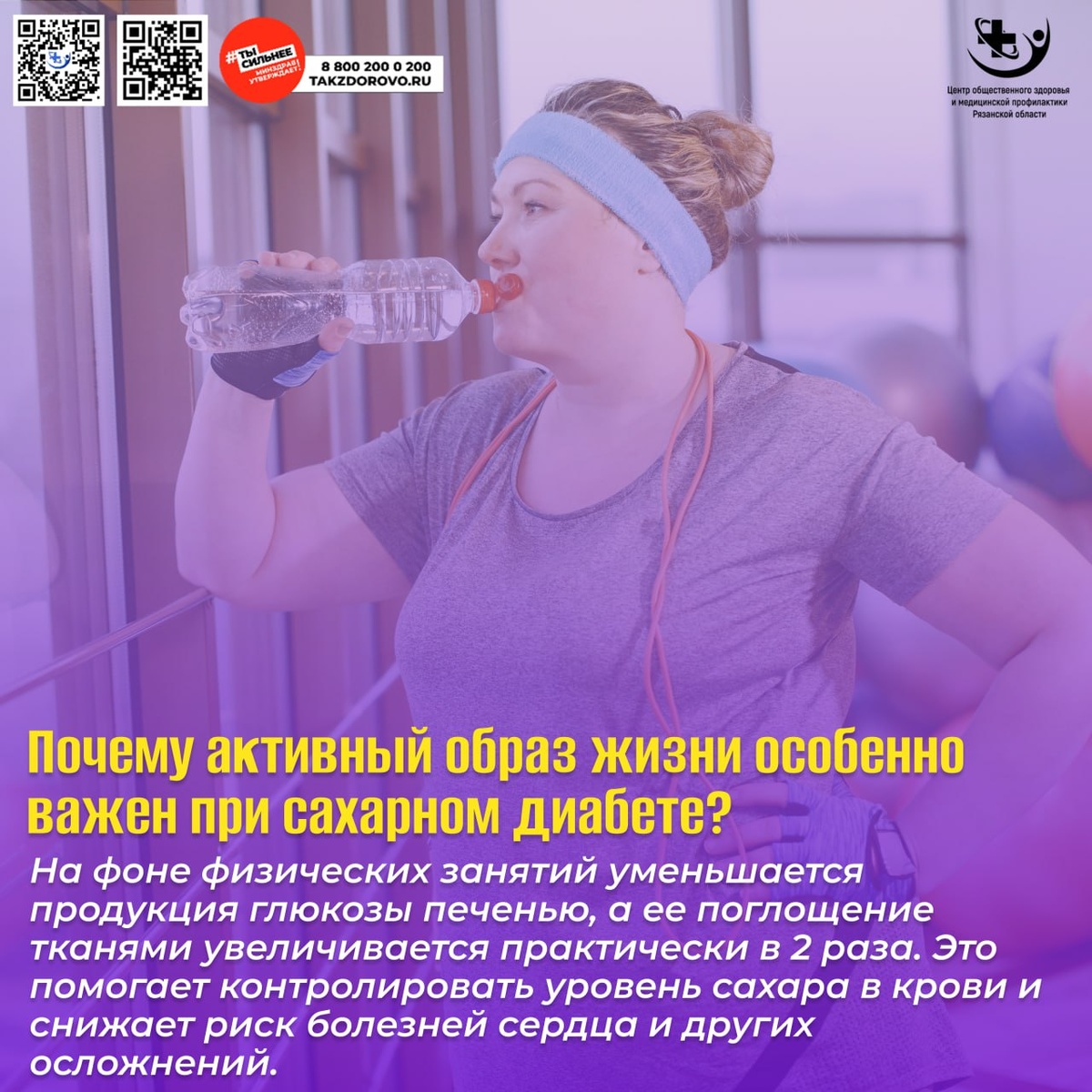 ! 💙 Регулярное движение помогает: ➡️ Снизить уровень глюкозы в крови — мышцы используют её как энергию. ➡️ Увеличить чувствительность к инсулину — клетки лучше реагируют на гормон. ➡️ Контролировать вес — это ключевой фактор управления диабетом 2-го типа. ➡️ Укрепить сердце и сосуды — снижая риск осложнений. Даже 150 минут умеренной активности в неделю (по рекомендации ВОЗ) работают как «природное лекарство»! Начните с малого: ✔️ Прогулки после еды ✔️ Легкая гимнастика ✔️ Постепенное увеличение шагов в день Движение = стабильный сахар + лучшее самочувствие + больше энергии. Неделя активного образа жизни — ваш шаг к балансу. Проконсультируйтесь с врачом и действуйте! 🌿 #ДиабетИАктивность #СахарныйДиабет #КонтрольГлюкозы #ЗдоровыеПривычки #ДвижениеЭтоЖизнь #АктивныйОбразЖизни #ЗдороваяРязань
