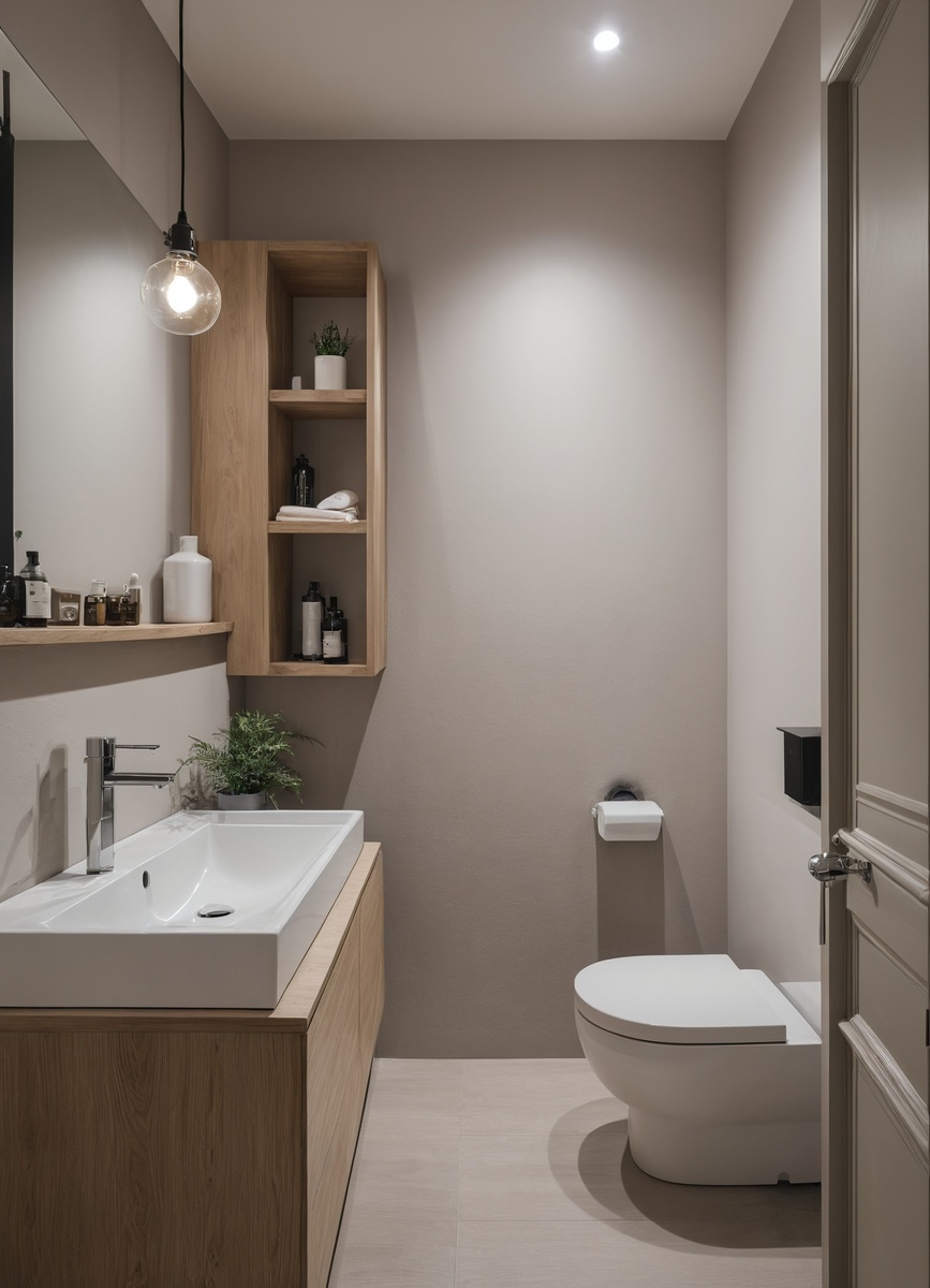 Стиль должен быть простым и функциональным. Современные минималистичные решения, такие как скрытые системы хранения и встроенные полки, позволяют максимально использовать каждый сантиметр. Выбор сантехники с простыми формами и хромированными элементами также визуально увеличит пространство. Правильное освещение - ключ к созданию уюта; используйте точечные светильники или зеркала с подсветкой, чтобы расширить границы вашего туалета.