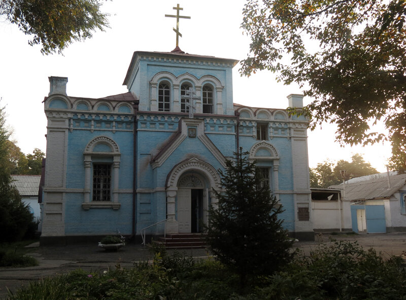 В Оше, очень среднеазиатском городе на юге Киргизии, прямо у главной площади есть церковь Михаила Архангела (1909), обезглавленная, но действующая: Русских в Оше несколько тысяч человек - для Ферганской долины это очень много. На улицах, впрочем, славянские лица почти не видны, зато при церкви... как часто бывает в Средней Азии, это не столько место отправления культа, сколько островок русского мира, и в скверике этом прогуливаются голубоглазые парочки, а на заднем дворе русские подростки играют в футбол. Длинный корпус пристроен к церкви сзади (буквой "Т"), видимо, в советское время - уж не знаю, чем она была тогда: Ну а рассудив, что церковь была центром уездного города, я отправился искать его осколки на окрестных улицах: Ош сто лет назад был с большим отрывом крупнейшим из трёх городов будущей Киргизии - 33 тысячи жителей, против 8 тысяч в Пржевальске и 6 тысяч в Пишпеке. Но русских из них было что-то около 800 человек на 1897 год (к 1916-му, конечно, стало побольше), и "уездный Ош