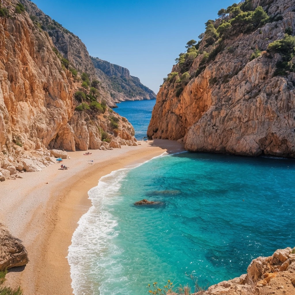 В нескольких километрах от Каша есть место, в которое, кажется, трудно поверить. Его название — Капуташ (Kaputaş Plajı) — не имеет отношения к знаменитой Каппадокии, но создает не менее сюрреалистичный пейзаж. Это не просто пляж. Это драматический природный театр, где главные роли играют отвесные скалы, узкий каньон и море невероятного, почти искусственного цвета. Наша поездка туда стала поиском этой конкретной точки на карте и потрясающим открытием.