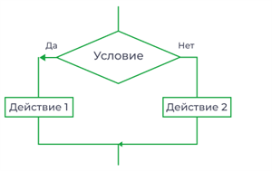 Ветвление — алгоритмическая конструкция, при выполнении которой в зависимости от проверки условия («да» или «нет») можно выбрать одну из двух последовательностей. Алгоритмы с конструкцией «ветвление» называются разветвляющимися. Общий вид (блок-схема) Рис. 1. Ветвление Общий вид (алгоритмический язык) если <условие> то <действие 1> иначе <действие 2> все Рис. 2. Неполная форма ветвления Общий вид (алгоритмический язык) если <условие> то <действие 1> все Вложенные ветвления — это ситуация, когда внутри одного условия мы проверяем ещё одно. Это открывает возможность для создания более сложных логических структур. 1. Простые ветвления (Если): Здесь программа просто проверяет, больше ли оценка или равна ли она 5. 2. Вложенные ветвления: Сначала проверяем, превышена ли скорость 60 км/ч. Если да, то запускается дополнительная проверка: превышена ли скорость 80 км/ч? В зависимости от результатов обеих проверок выводится соответствующее сообщение. Рис. 3. Схема вложенного цикла Сложные условия