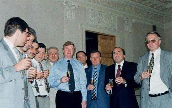 А теперь пусть школота расскажет мне, как классно жилось при Ельцине. P.S.: А это т.н. «семибанкирщина». Такие одухотворённые лица, правда?"