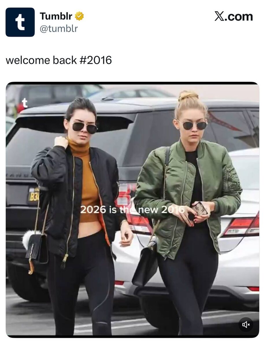 Официальный аккаунт Tumblr подтвердил главный тренд 2026 — возвращение моды 2016.