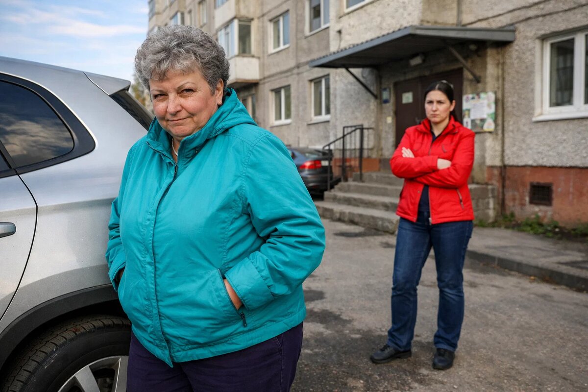 Ольга вышла из подъезда в семь утра и замерла на крыльце. Зинаида Петровна стояла возле её машины нагнувшись, шарила руками под задним бампером. Возилась там как то подозрительно сосредоточенно. Когда услышала шаги, резко выпрямилась и сунула руки в карманы.