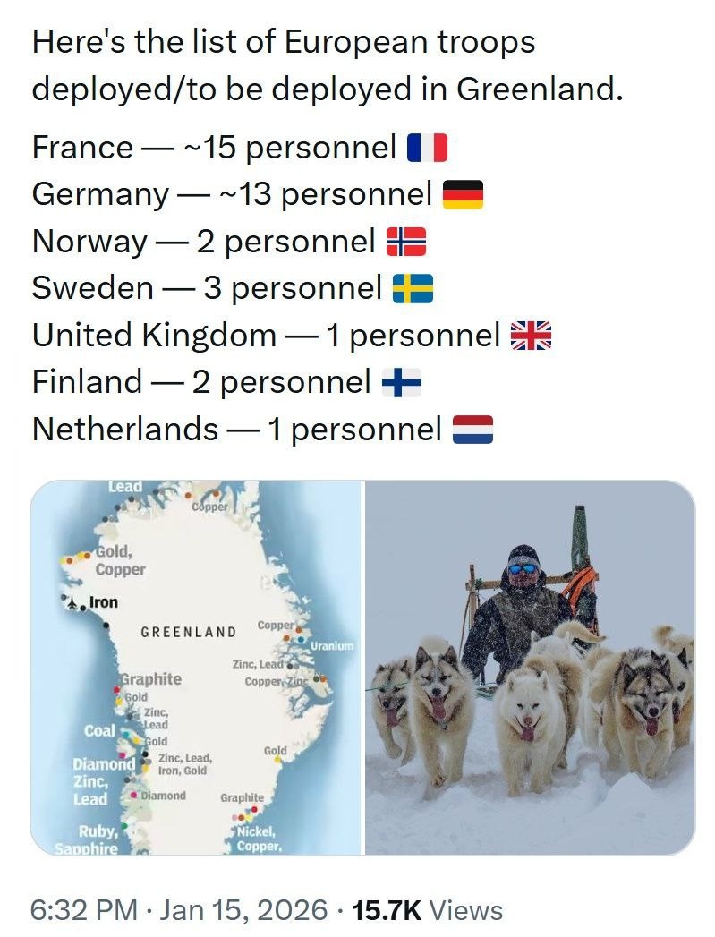 Европа стягивает грозную армаду в Гренландию — аж 37 бойцов против “аппетитов” Трампа