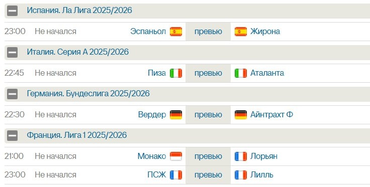 Матчи на сегодня