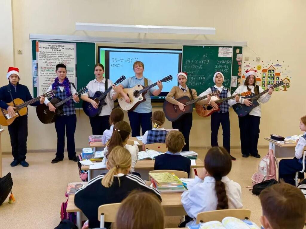 Вместо привычного классного часа ученики начальных классов школы №17 встретили Старый Новый год под живой звук гитары. Юные музыканты из числа старшеклассников организовали импровизированный праздничный тур по кабинетам Репертуар был подобран специально для детской аудитории — ребята исполняли веселые и известные песни. Атмосфера быстро стала по-настоящему праздничной: многие дети начали подпевать, а самые активные не смогли усидеть на месте и пустились в пляс. Как отметили педагоги, такая инициатива стала прекрасным творческим подарком, который помог создать душевную и радостную атмосферу в один из самых сказочных дней зимы.