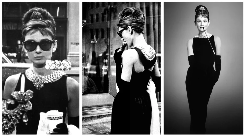 Почему стал популярен: этот образ — воплощение элегантности и утончённости. Сцена у витрины Tiffany & Co. стала одной из самых узнаваемых в истории кино. Дизайнер Юбер де Живанши создал для героини минималистичный наряд, который подчёркивал её хрупкость и одновременно — внутреннюю свободу.