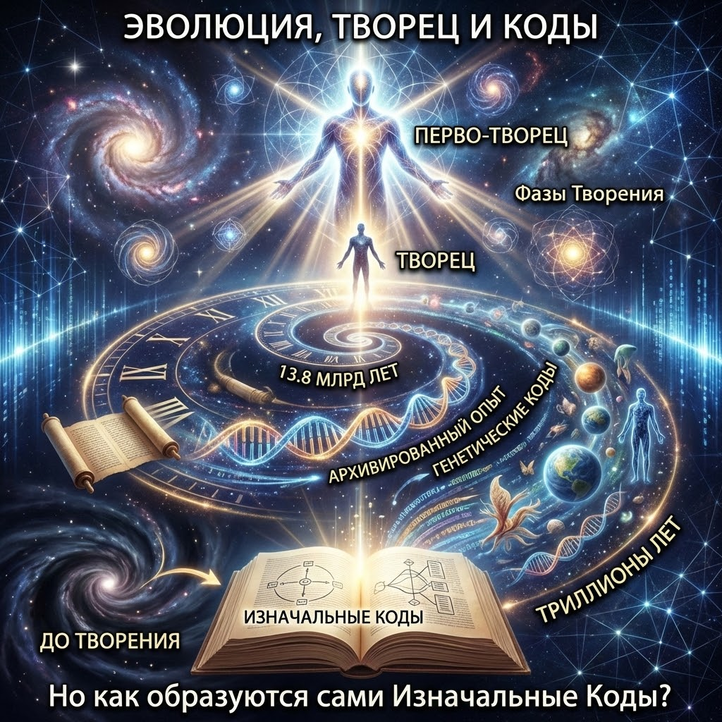 Наличие кодов сразу обозначает какую-то жизнь (иначе, для чего вообще нужны коды?), а значит, какое-то бытие. Коды начинают своей информацией выращивать всё, вплоть до самых невероятных Творений.