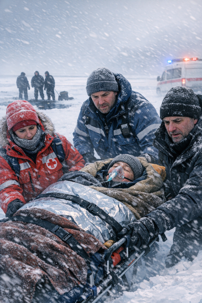 Мы работали слаженно, молча. Сперва – термоизоляционное покрывало с серебристым слоем внутрь, чтобы отражать собственное тепло тела. Поверх – толстое шерстяное одеяло. На голову – шапка, на руки – варежки. Аккуратно, бережно, как упаковывают хрусталь, перекатили его на жёсткие носилки. Каждое движение было осторожным, чтобы не трясти, не тревожить.