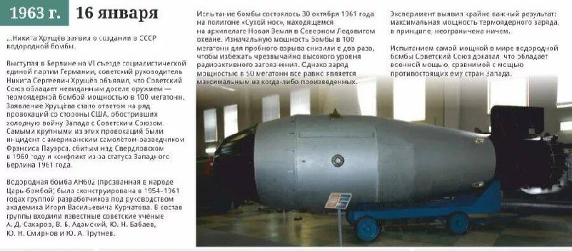 1963 - Н. С. Хрущев объявил о наличии у СССР водородной бомбы огромной разрушительной силы. После её испытания на Новой Земле ударная волна четырежды обогнула Земной шар. Учёные предупредили Н. С. Хрущёва, что увеличивать мощность этой «царь-бомбы» опасно, т.к. взрыв может расколоть Землю. На пределе🔥