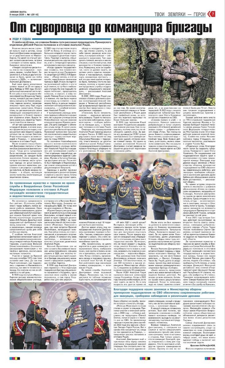 : ⭐️ Сегодня мы хотим рассказать вам о вдохновляющем пути полковника в отставке Анатолия Рэцоя, председателя Приморского регионального отделения ДОСААФ России! Его жизнь — пример настоящего защитника Родины. От службы в горячих точках Афганистана и Северного Кавказа до руководства оборонным обществом — этот человек прошел долгий и сложный путь, чтобы передать молодым поколениям знания и опыт. ✅ Сегодня Анатолий Рэцой возглавляет организацию, занимающуюся подготовкой молодёжи и развитием военно-патриотического движения в Приморье. Присоединяйтесь к нам, следите за нашими публикациями и узнайте больше о людях, которые служат нашей стране! #ДОСААФПриморья #ПатриотыРоссии #ЗащитникиОтечества