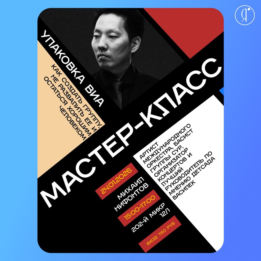 #МК От звука до образа: полный цикл создания запоминающегося проекта Вы научитесь: - Создавать целостный образ группы - Работать с визуальным контентом и VJ-графикой - Эффективно продвигать свой проект - Привлекать внимание продюсеров и организаторов Ведущий: Михаил Нифонтов, музыкант, который реализовался в разных амплуа: 🎼 От академической сцены в оркестре ДВМОРНИ (гастроли по республике и городам России) до коллабораций с Харбином 🎸 От бас-гитары в группах Zwooqi, What You Want, CYP до создания собственного подкаста 24 января | 15:00-17:00 Дом музыкантов, 202 мкрн, 12/1 750 руб. Подробнее Online Якутия | Ждем вас в МАХ