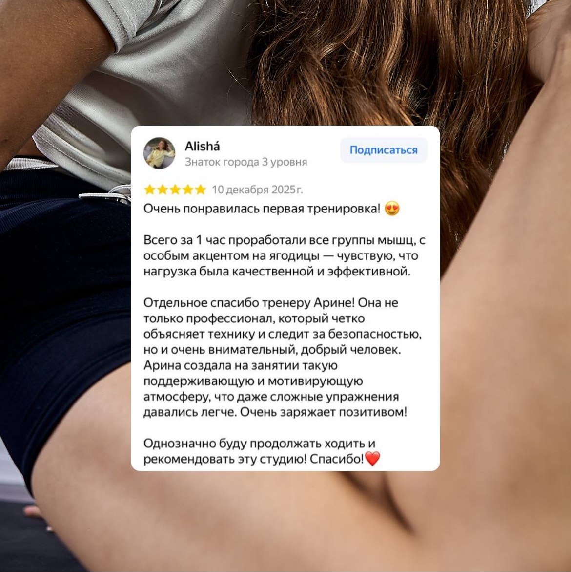 ✨ Из отзывов про Арину чаще всего звучит одна и та же связка: «чётко объясняет технику и следит за безопасностью» ✅ И дальше уже легче: когда спокойно в голове, тело начинает работать точнее — и сложные упражнения перестают пугать, потому что вы понимаете, что именно делаете и зачем 🧠💪 После тренировки остаётся ощущение, что время прошло не впустую: всё тело включилось, а акцент на технике был действительно “по делу” 🔥🍑 Если откликается — можно выбрать занятие Арины в расписании или написать в сообщения, подскажем, куда лучше встать новичку 🤍