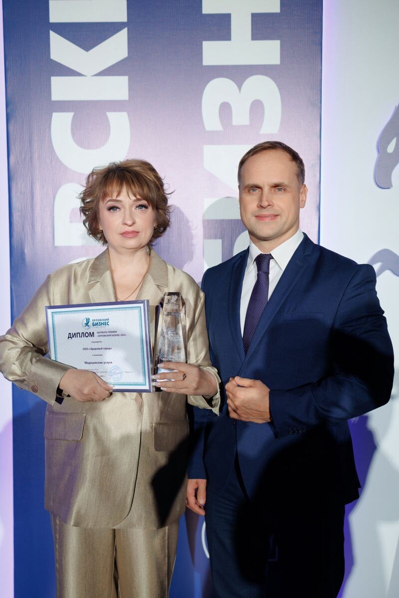 Пятого декабря прошлого года в банкетном зале «Горький Холл» состоялось грандиозное бизнес-событие – официальная церемония награждения победителей ежегодной премии «Орловский бизнес-2025». Медицинский центр «Здоровый город» стал победителем в номинации «Медицинские услуги». Публикуем сюжет с награждением лауреата. Хрустальную статуэтку первому заместителю генерального директора медицинского центра «Здоровый город» Инне Бутыриной вручил и.о. руководителя департамента здравоохранения Орловской области Константин Бобраков. - Хочу сказать огромное спасибо за оценку нашего труда. Наша компания молодая и мы получаем эту награду в первый раз. Хочу пожелать вам быть здоровыми, а мы вам в этом поможем. Ждем в «Здоровом городе», - сказала Инна Бутырина. Медицинский центр «Здоровый город» принимает пациентов в самом центре Орла. На бульваре Победы,2 создано современное уютное пространство, где можно провести исследование на новейшем оборудовании, сдать анализы, получить консультацию как местных с