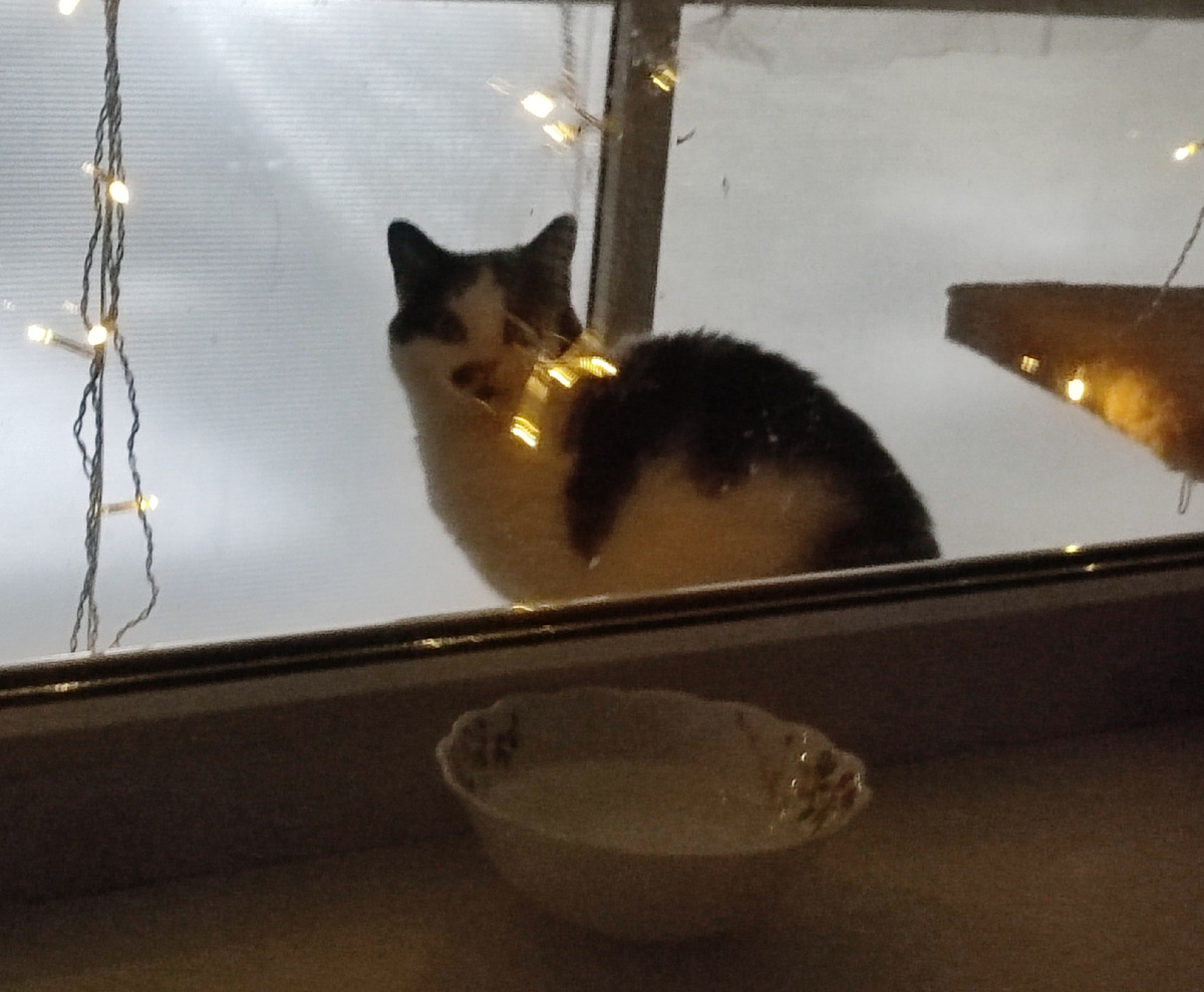 Пришлось идти на балкон снимать гирлянду, пока пушистая ее не съела совсем.