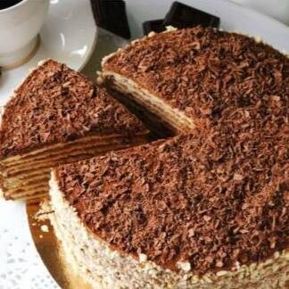 · Сборка: Каждый корж слегка смочите молоком, промажьте кремом и сложите стопкой. Обмажьте весь торт кремом и украсьте. Обязательно дать настояться в холодильнике.
